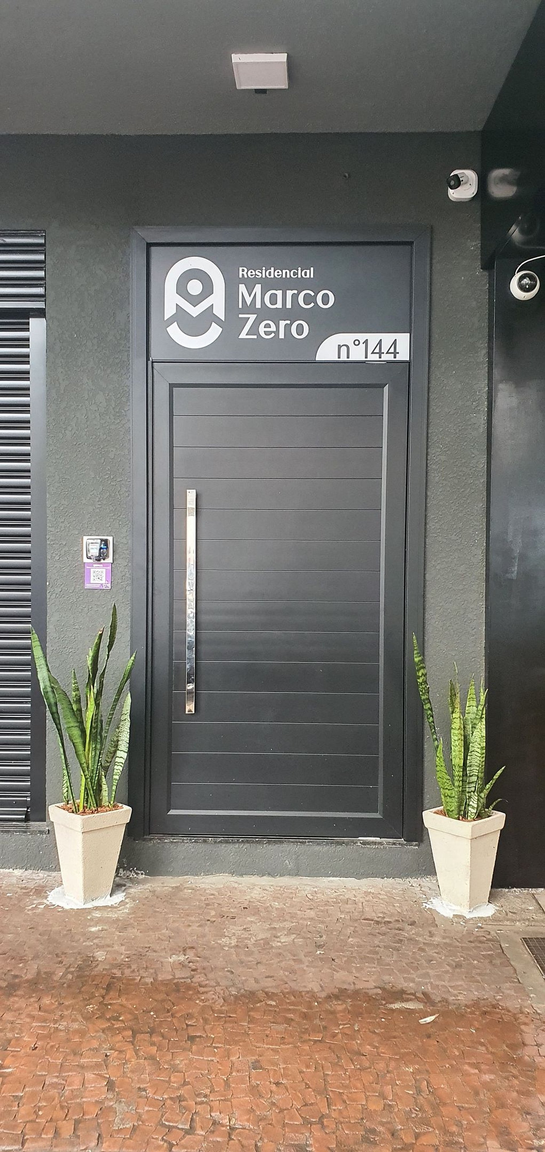 Entrada pela frente do residencial Marco Zero, porta principal, acesso com qr code ou tag.