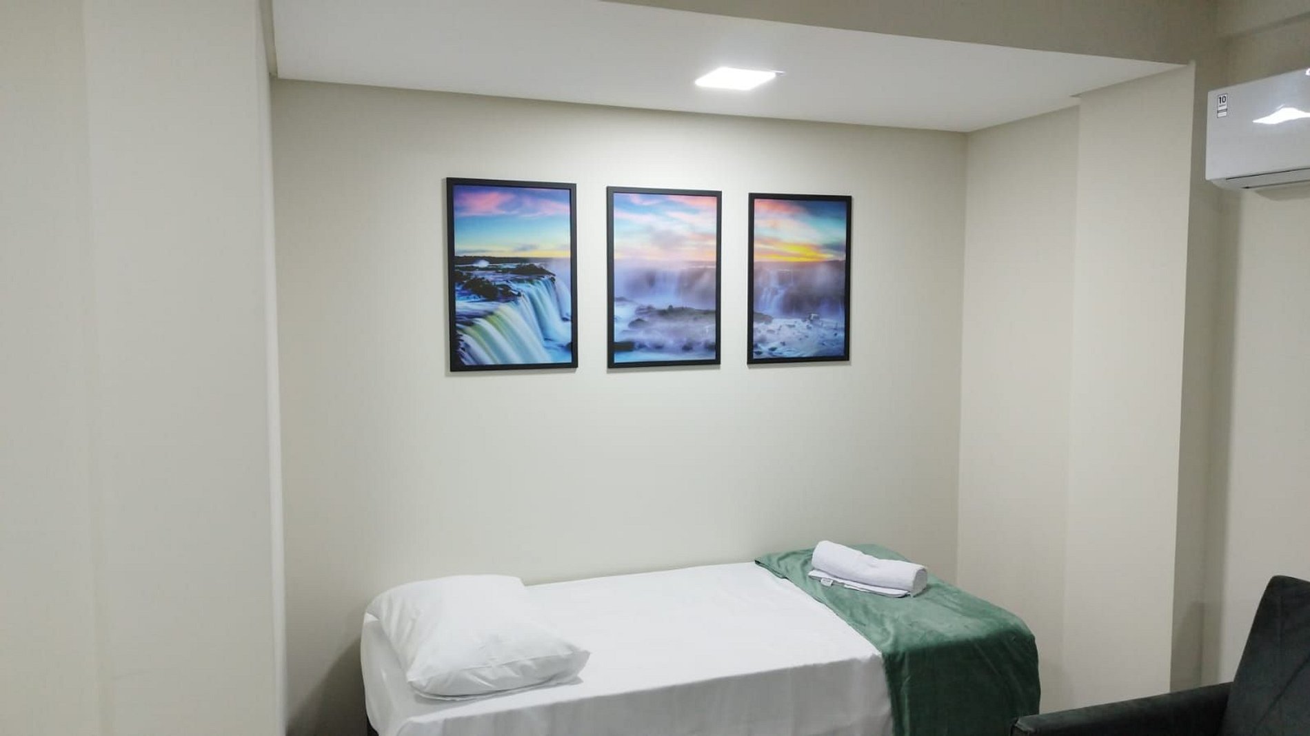 Welcome to your contemporary retreat in Foz do Iguaçu! This studio has been carefully designed to optimize your comfort, featuring modern decor and new furniture. From the window, you'll have a charming view of the city skyline.