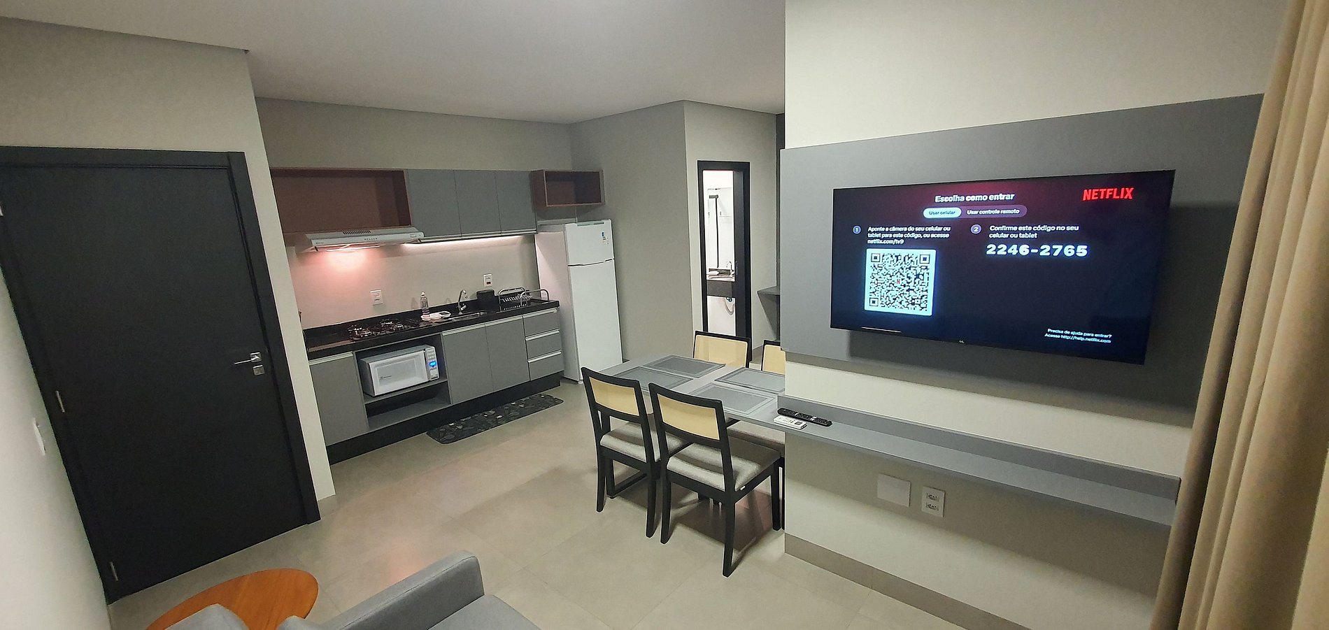 Moderno e completo o MZ atende todas as suas necessidades para hospedagem, sejam curtas e longas. Possui cama queen size, ar condicionado, internet wifi, Smarth TV, cafeteira, estacionamento e segurança.