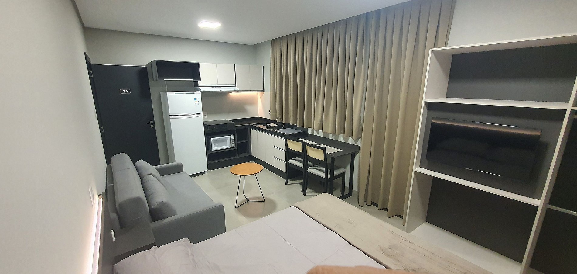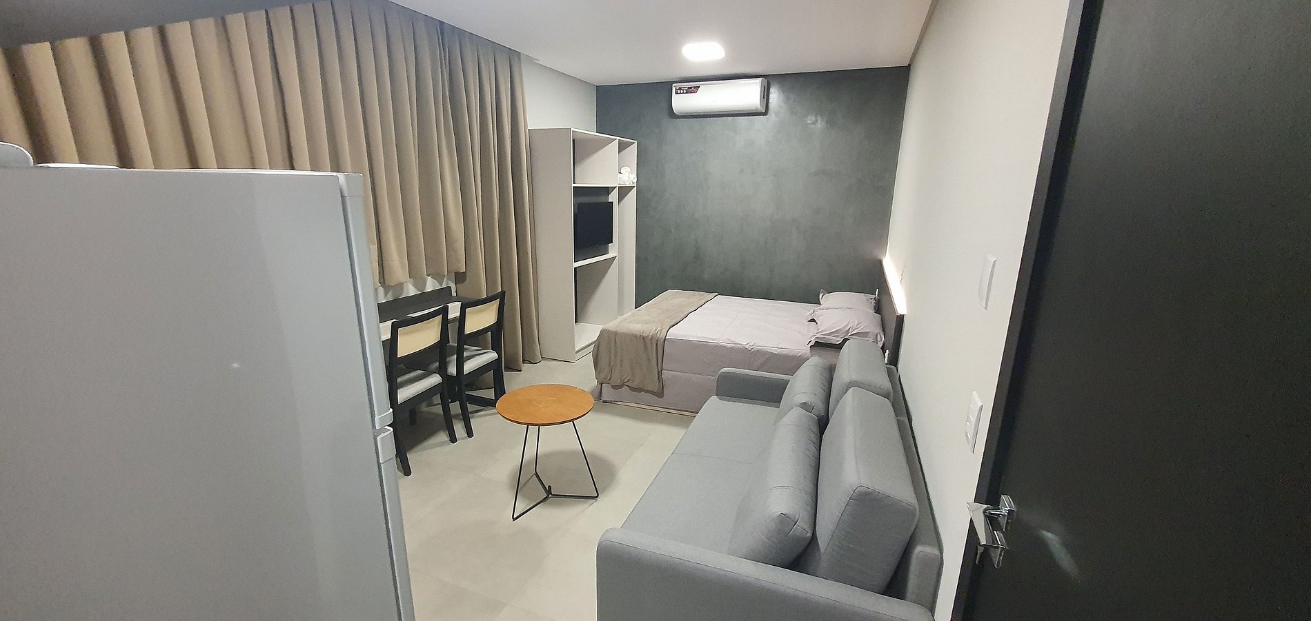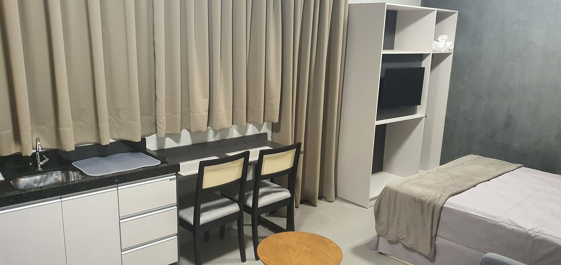 Moderno e completo o MZ atende todas as suas necessidades para hospedagem, sejam curtas e longas. Possui cama queen size, ar condicionado, internet wifi, Smarth TV, cafeteira, estacionamento e segurança.