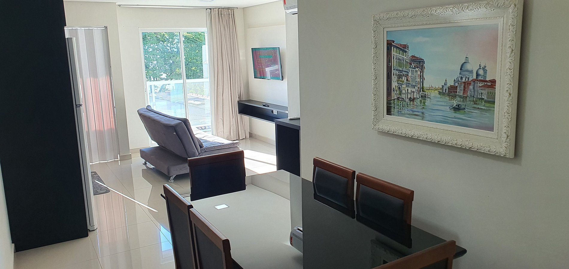 Apartamento super bem localizado, completo no segundo andar com elevador, estacionamento e interfone; WIFI, Smart TV e AR condicionado em todos os cômodos; Possui dois quartos: um quarto casal e um quarto com uma cama de solteiro; Ambiente integrado de sala de jantar e estar, espaço amplo com mesa, 6 cadeiras, sofá cama. Cozinha completa com louças, utensílios e equipamentos básicos; Área de serviço com tanque, armário e varal.