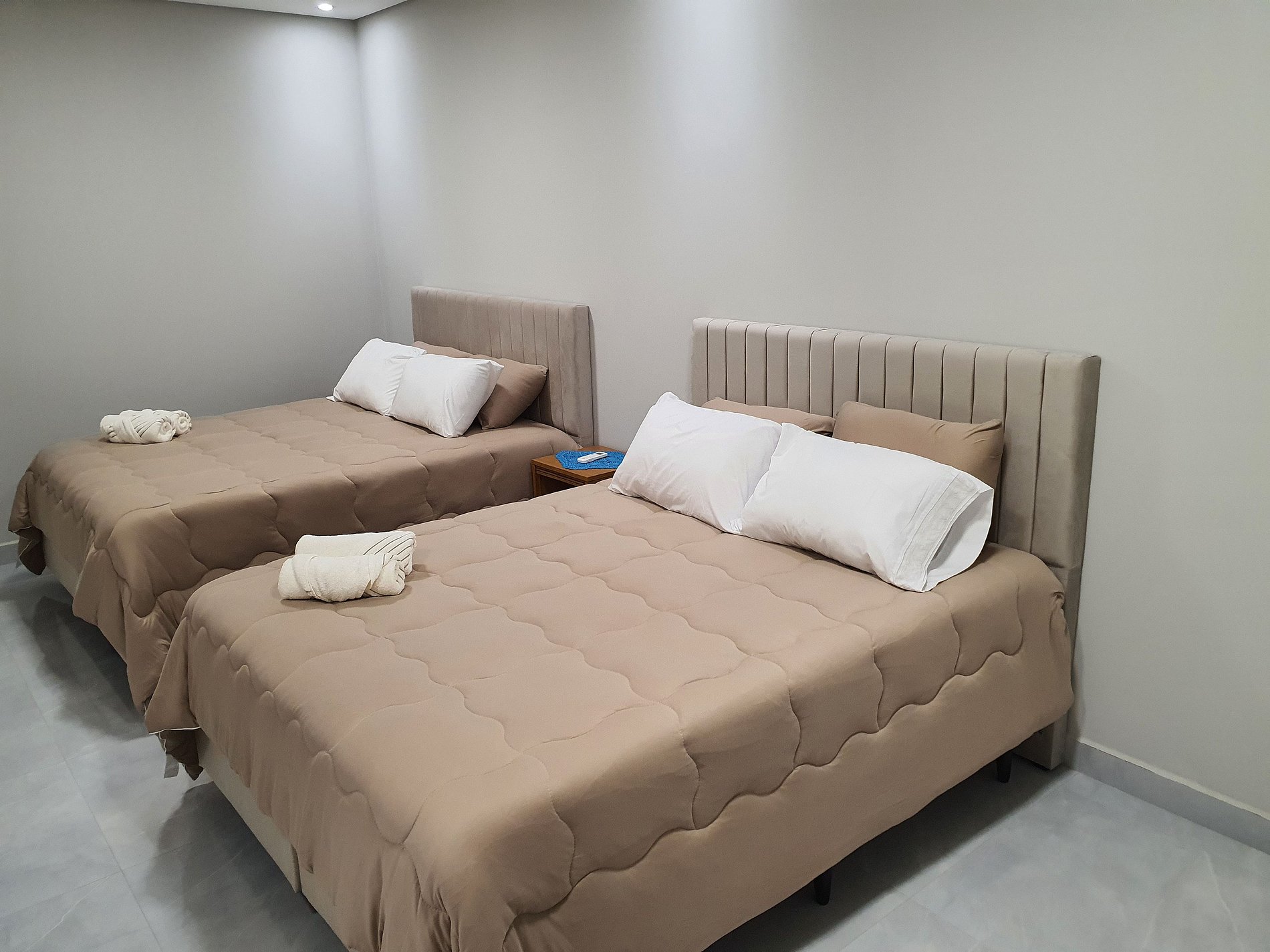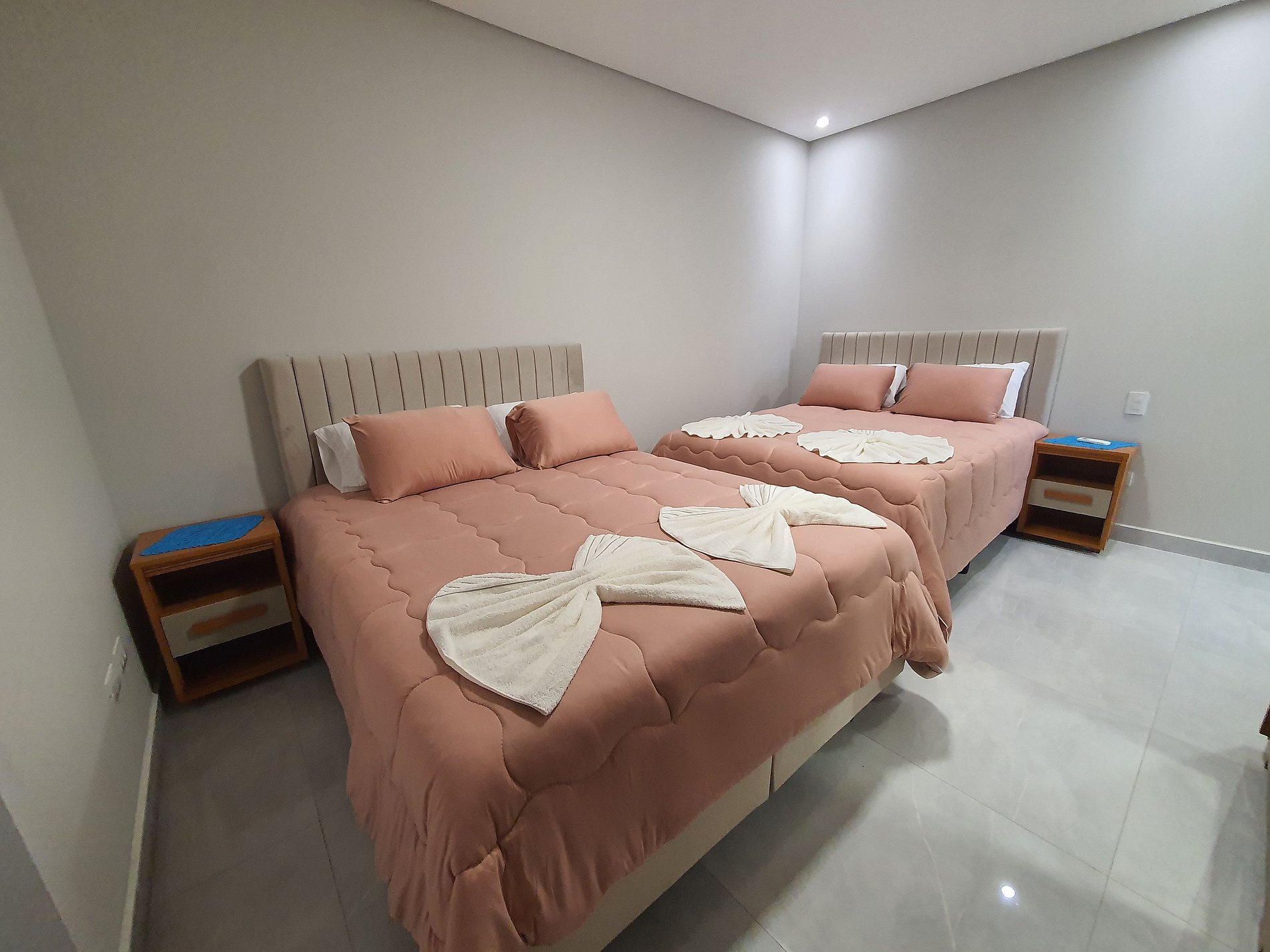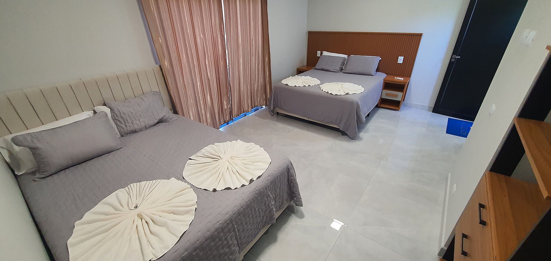 Tipo de acomodações: 03 suítes com 2 camas queen, 01 suíte com 1 cama queen e 01 quarto casal