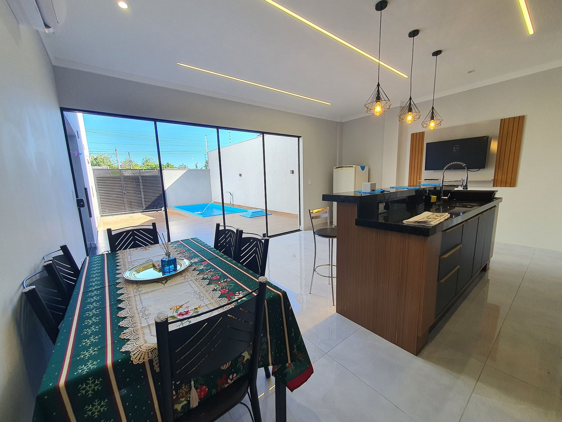 A área gourmet é totalmente equipada e integrada à piscina, criando um ambiente ideal para lazer e convivência. Localizado em bairro residencial tranquilo, com fácil acesso a comércio, serviços e principais vias da cidade, o sobrado é perfeito para famílias, grupos e estadias prolongadas.