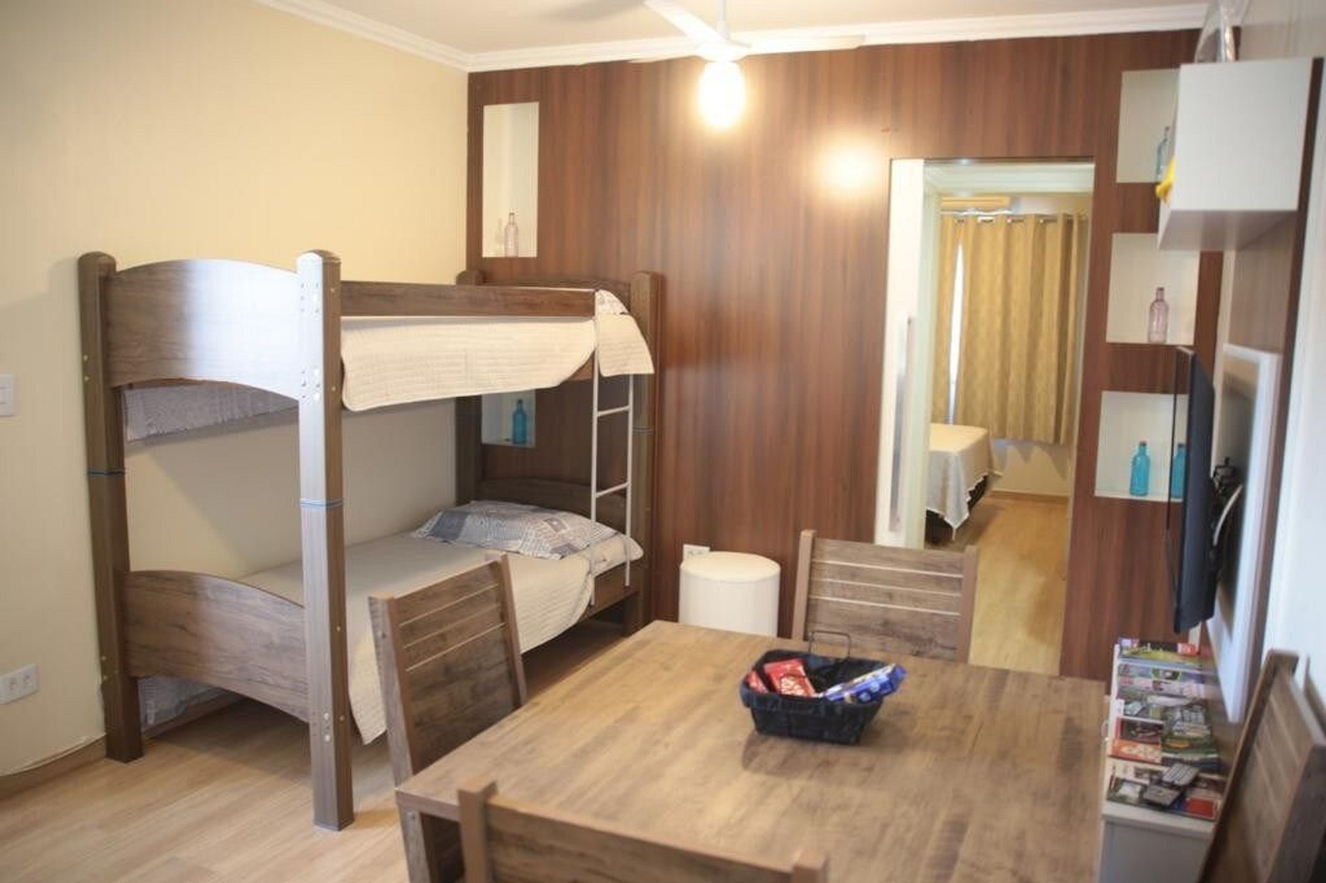 O apartamento com ar-condicionado é composto por 1 quarto casal, sala de estar com sofá-cama, cozinha completa, com micro-ondas, cafeteira e todos os utensílios.