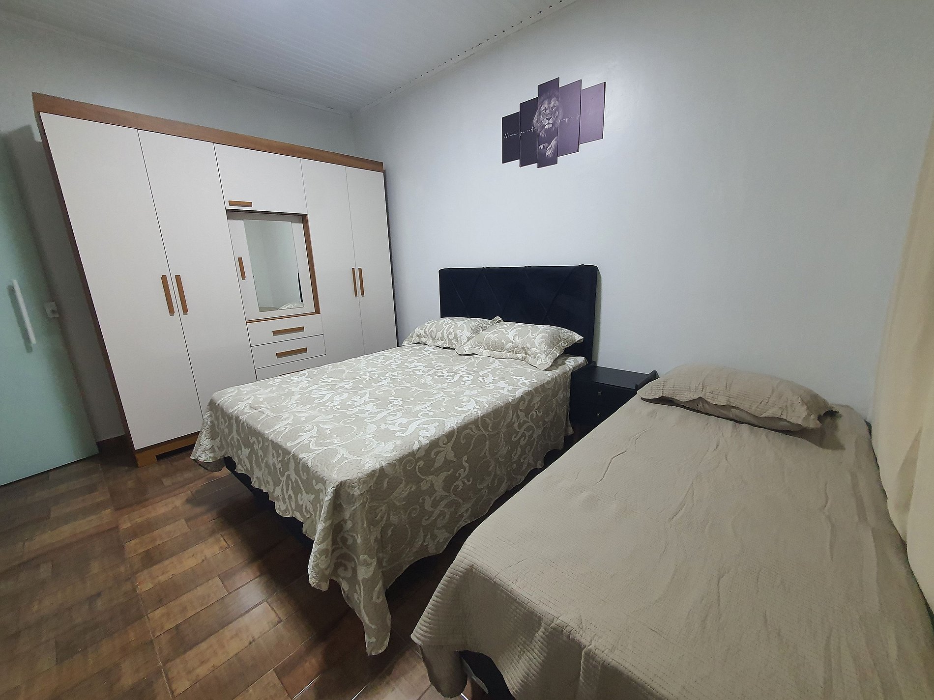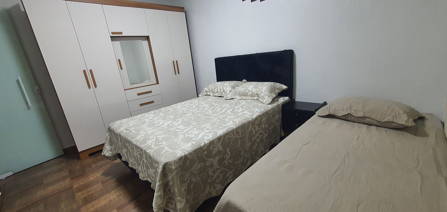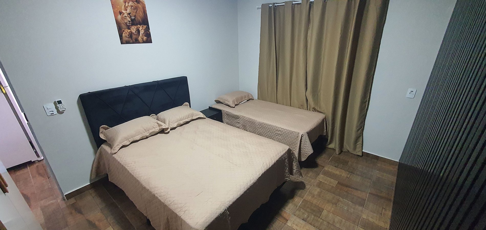 Quartos grandes confortáveis, excelente para casal com filho.