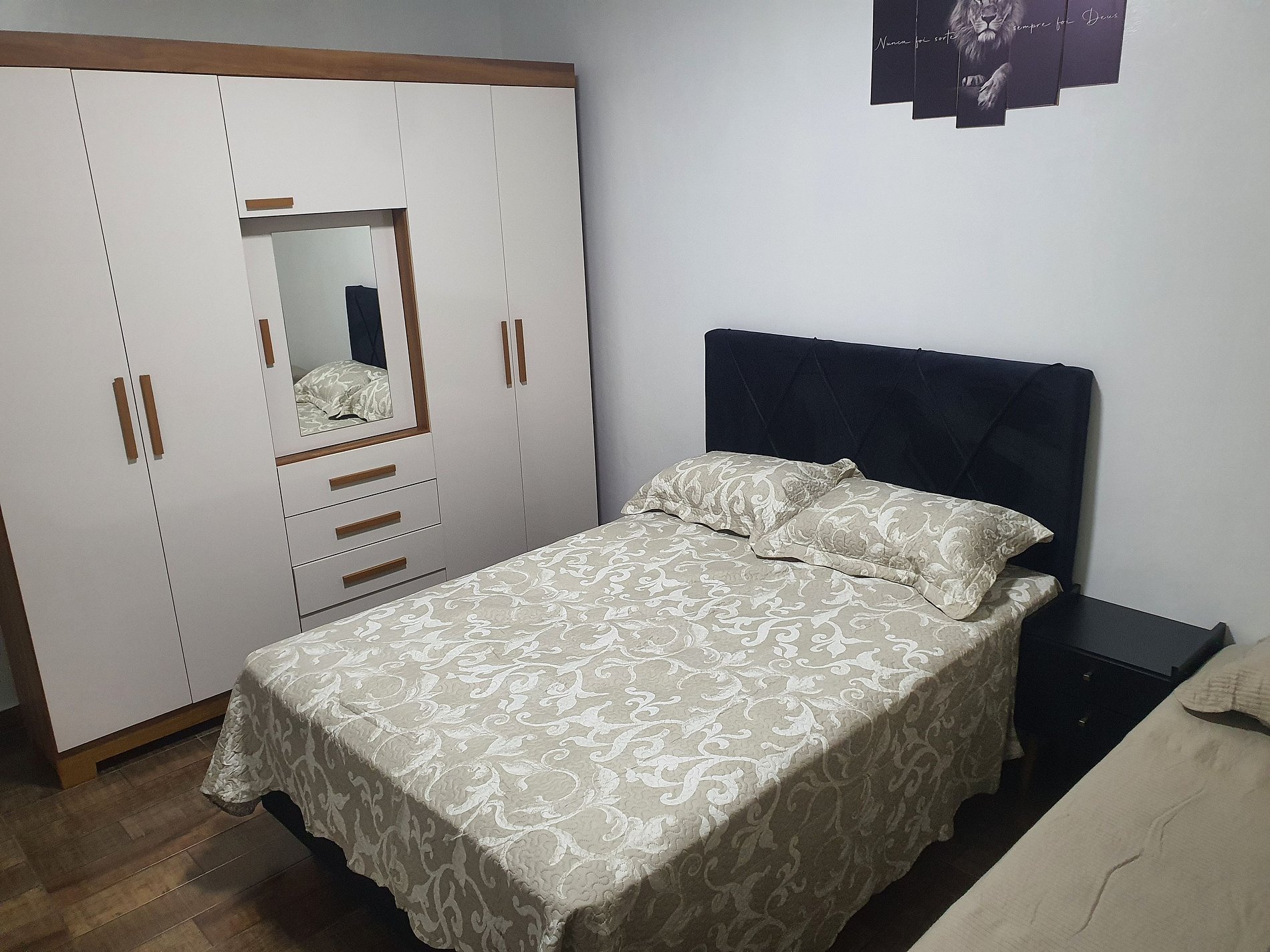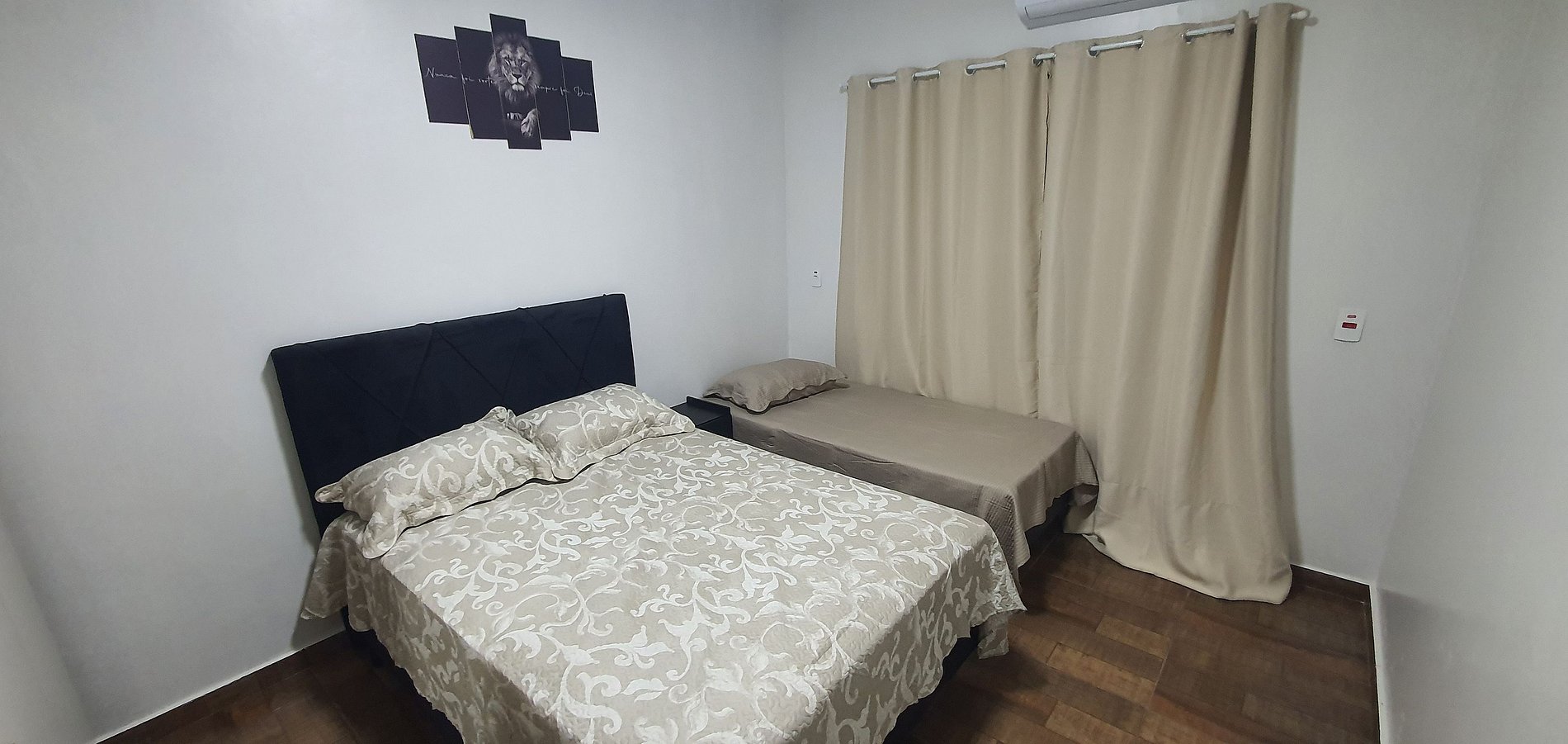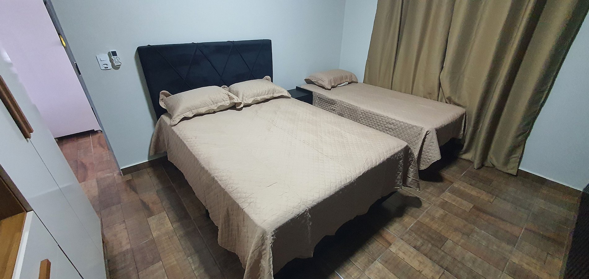 Quartos grandes confortáveis, excelente para casal com filho.